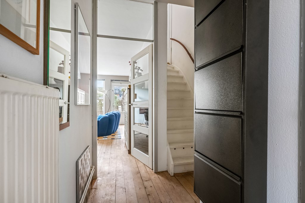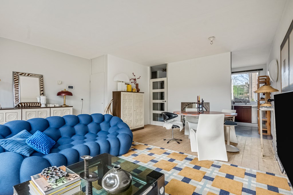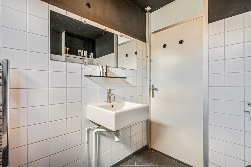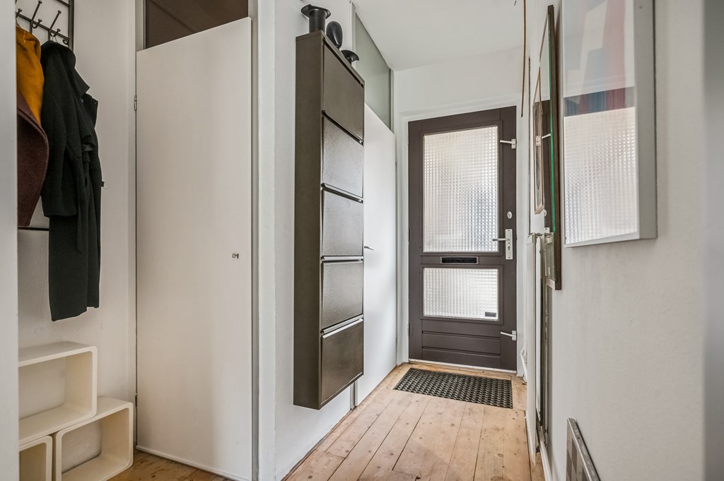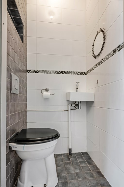 De hal is ruim opgezet en voorzien van een toilet. Bij binnenkomst in de woonkamer valt direct de prettige lichtinval op. De tuingerichte woonkamer is sfeervol en biedt meer dan genoeg ruimte voor een royale zithoek en een kastenwand. Dankzij de grote raampartijen geniet je vanaf de bank van een fijn uitzicht op de zonnige tuin.