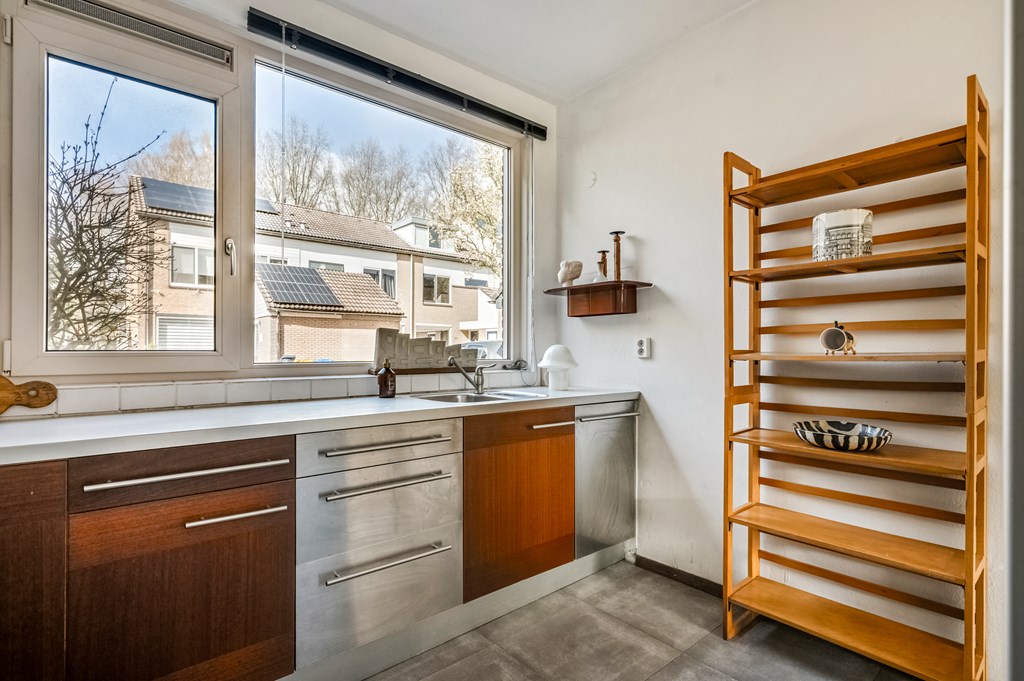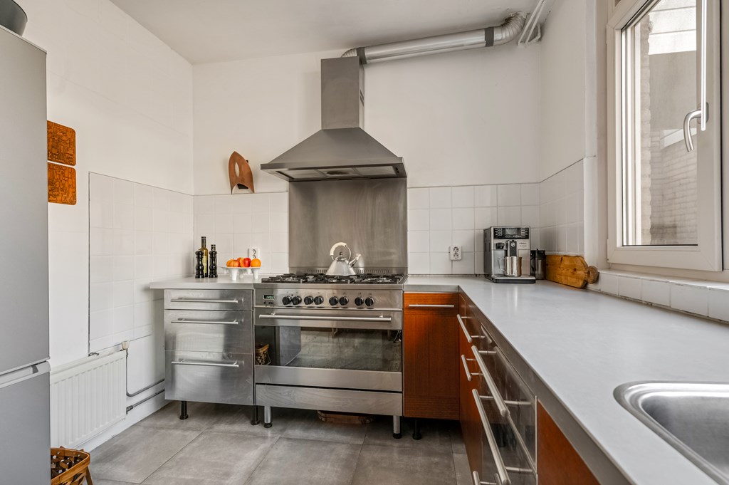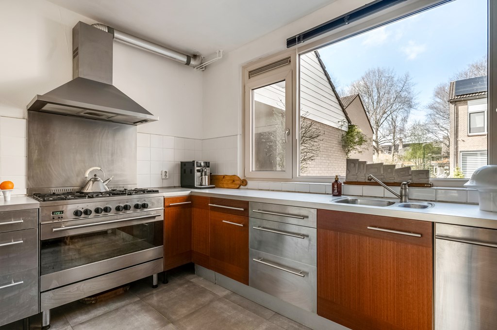 De keuken bevindt zich aan de voorzijde van de woning en is uitgevoerd in een praktische L-opstelling. Deze is voorzien van onder andere een gasfornuis, oven en vaatwasser.