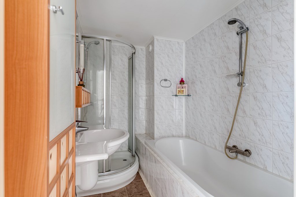 Op de verdieping bevinden zich 4 slaapkamers. De grootste 2 zijn beiden circa 10 vierkante meter groot en zijn beide geschikt voor een tweepersoonsbed met kledingkast of tv-meubel. De overige 2 zijn beide circa 6 vierkante meter groot en geschikt als kinderkamer of thuiswerkplek. De badkamer is voorzien van een wastafel, wastafelmeubel, een ligbad en een douche.