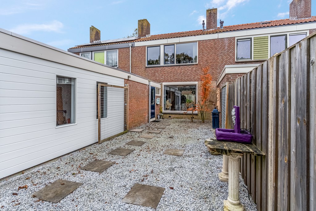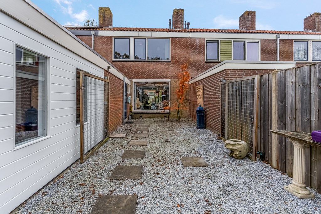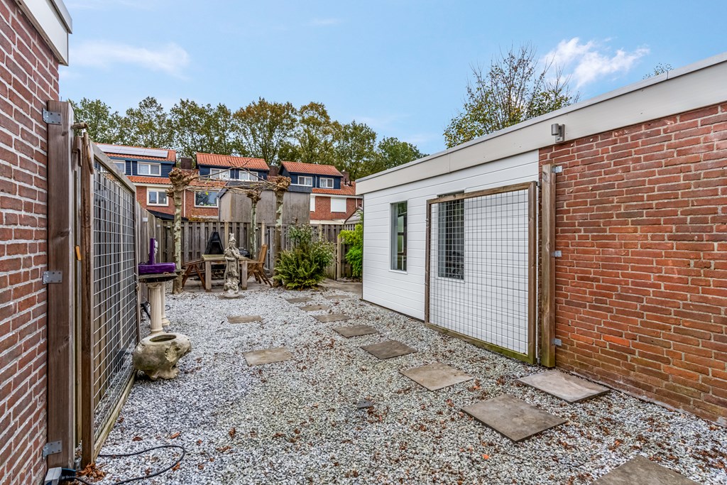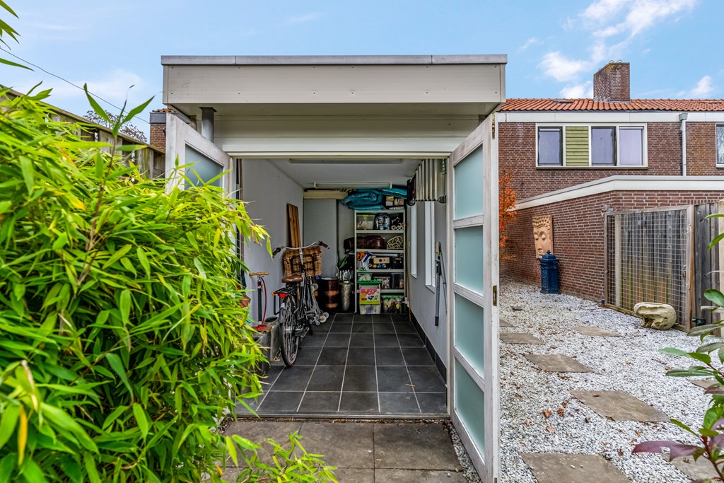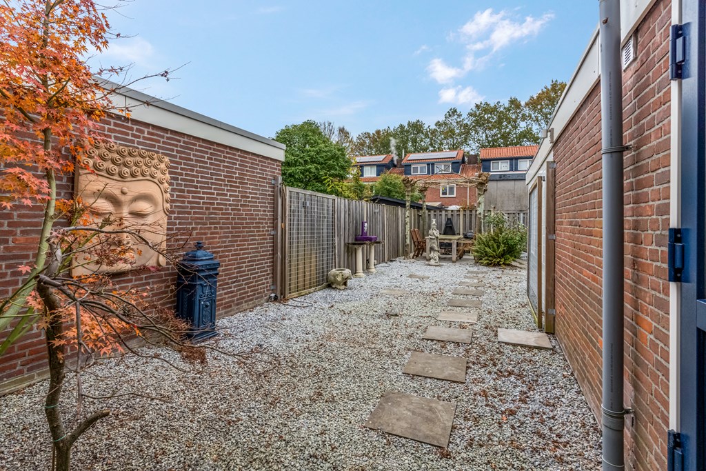 Een absolute eyecatcher bij deze woning is de heerlijk diepe achtertuin. De achtertuin biedt veel privacy en is uitermate geschikt voor het maken van meerdere zitjes. Achterin de tuin is een ruime berging met openslaande deuren geplaatst met meer dan genoeg ruimte voor fietsen, een motor en/of andere zaken. Tevens is de achtertuin voorzien van een achterom.