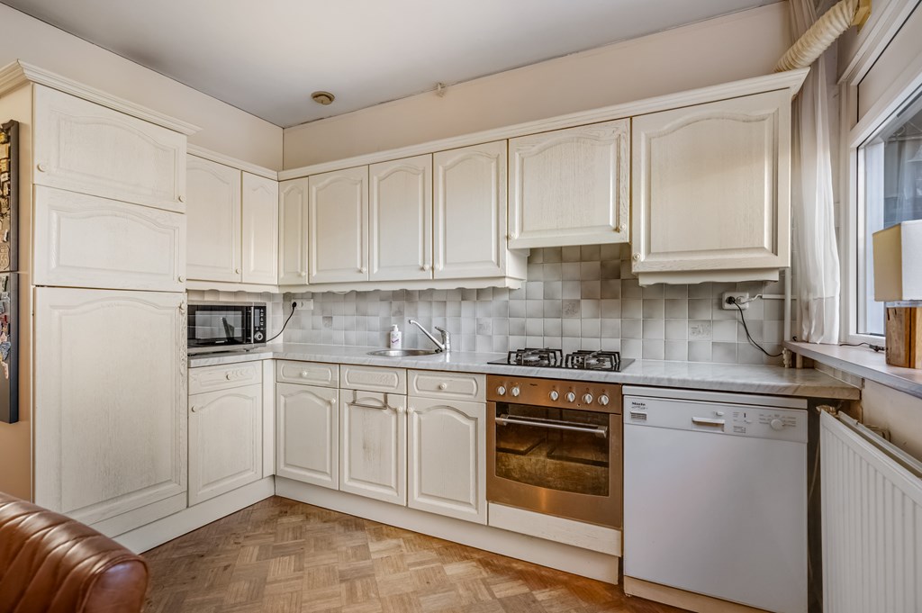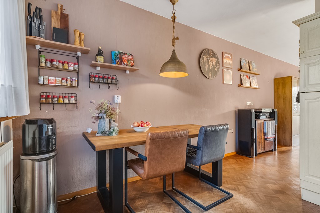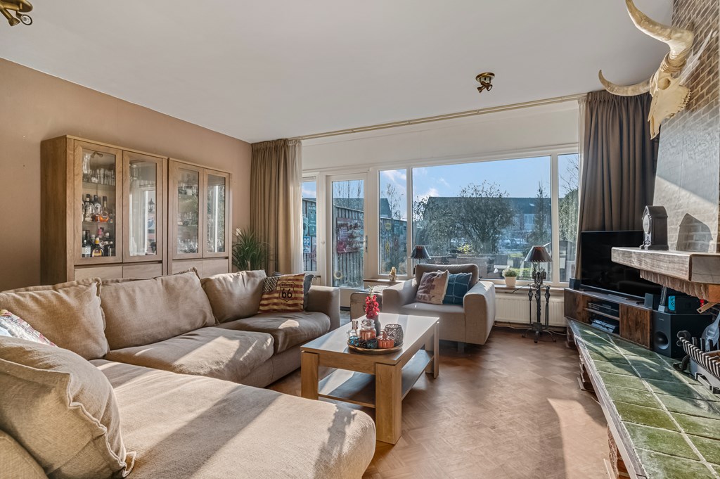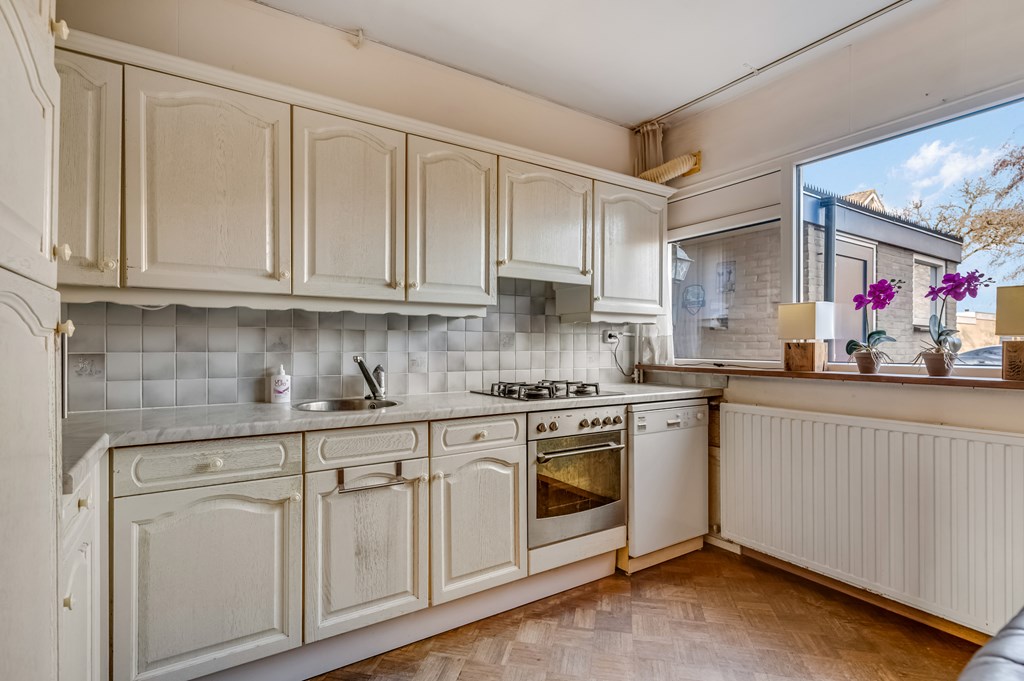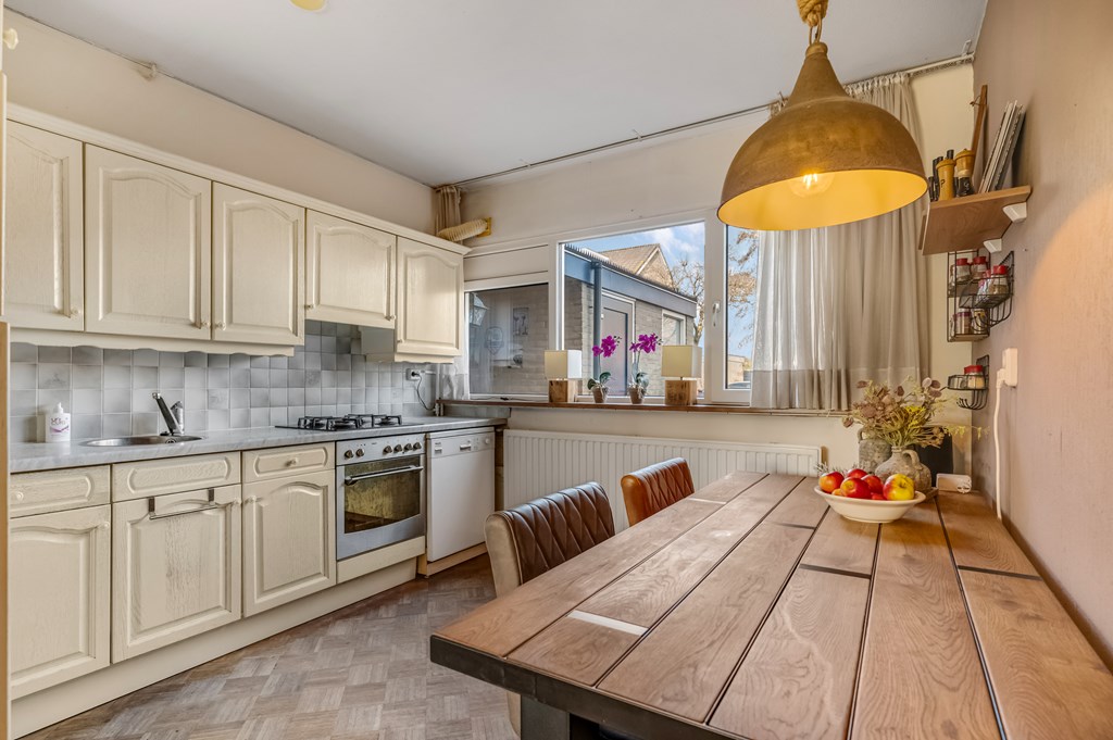 Via de hal, voorzien van een toilet, kom je in de woonkamer. Deze is ruim opgezet en biedt meer dan genoeg plek voor een grote zitbank én een royale eettafel. Vanuit de woonkamer kijk je door de grote raampartij uit op de achtertuin, wat zorgt voor extra lichtinval en een prettige verbinding tussen binnen en buiten. De keuken is functioneel en compleet uitgerust met onder andere een vaatwasser, koelkast, vriezer, oven en magnetron.