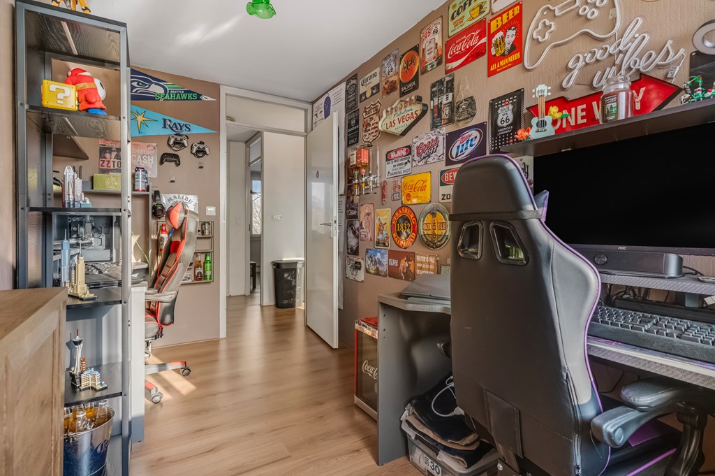 Middels de vaste trap komen we op de zolderverdieping. De zolderverdieping beschikt over slaapkamer 4 en is voorzien van een dakkapel aan de achterzijde. In de toekomst zou van deze ruimte, middels een makkelijke ingreep, nog een extra slaapkamer gemaakt kunnen worden. De cv-ketel (ATAG, 2018, in eigendom) is netjes weggewerkt in de wasruimte, welke is voorzien van aansluitingen voor de wasmachine en droger.