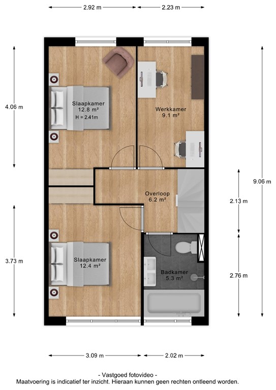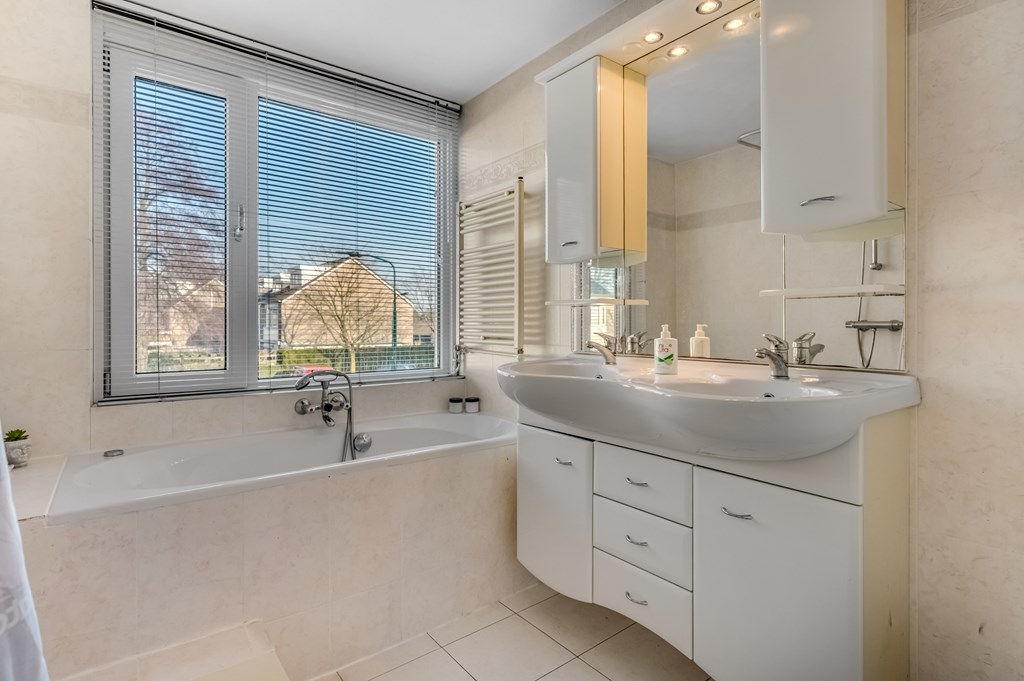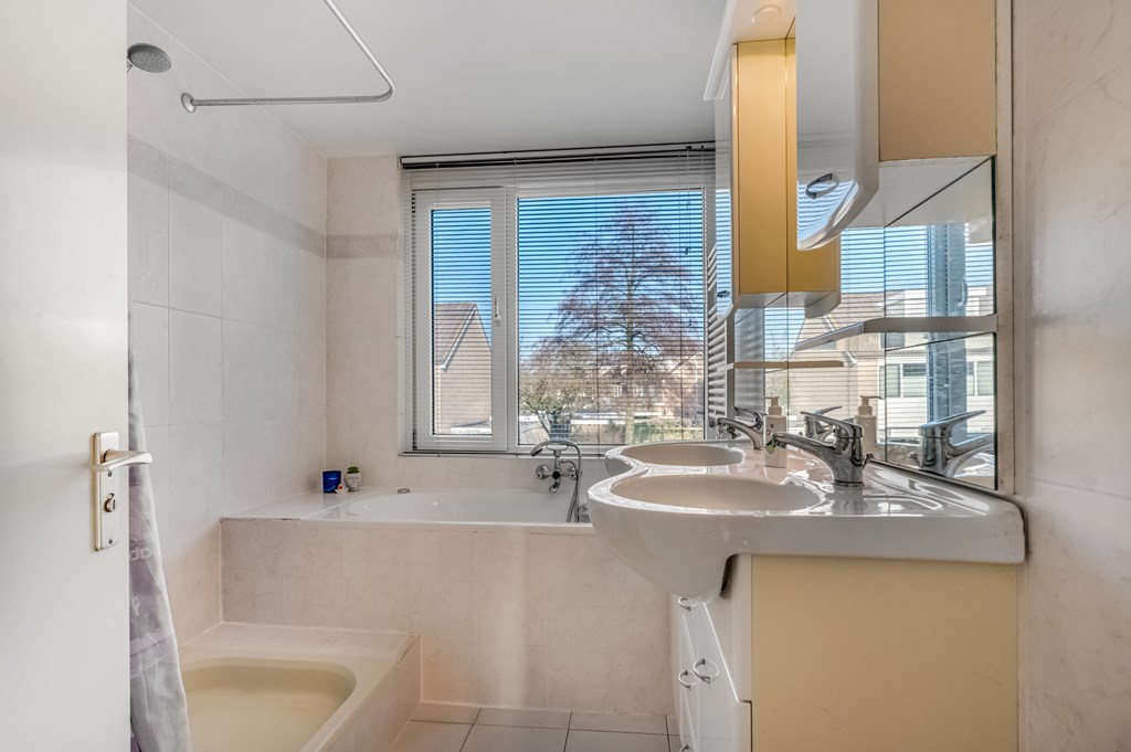 Op de verdieping vind je 3 ruime slaapkamers van circa 13, 12 en 9 vierkante meter. Slaapkamer 1 en 2 doen nauwelijks voor elkaar onder en slaapkamer 3 is nu in gebruik als werkplek, maar zou makkelijk in te delen zijn als extra slaapkamer. De badkamer is degelijk en is voorzien van een ligbad, douche, wastafelmeubel en een toilet.