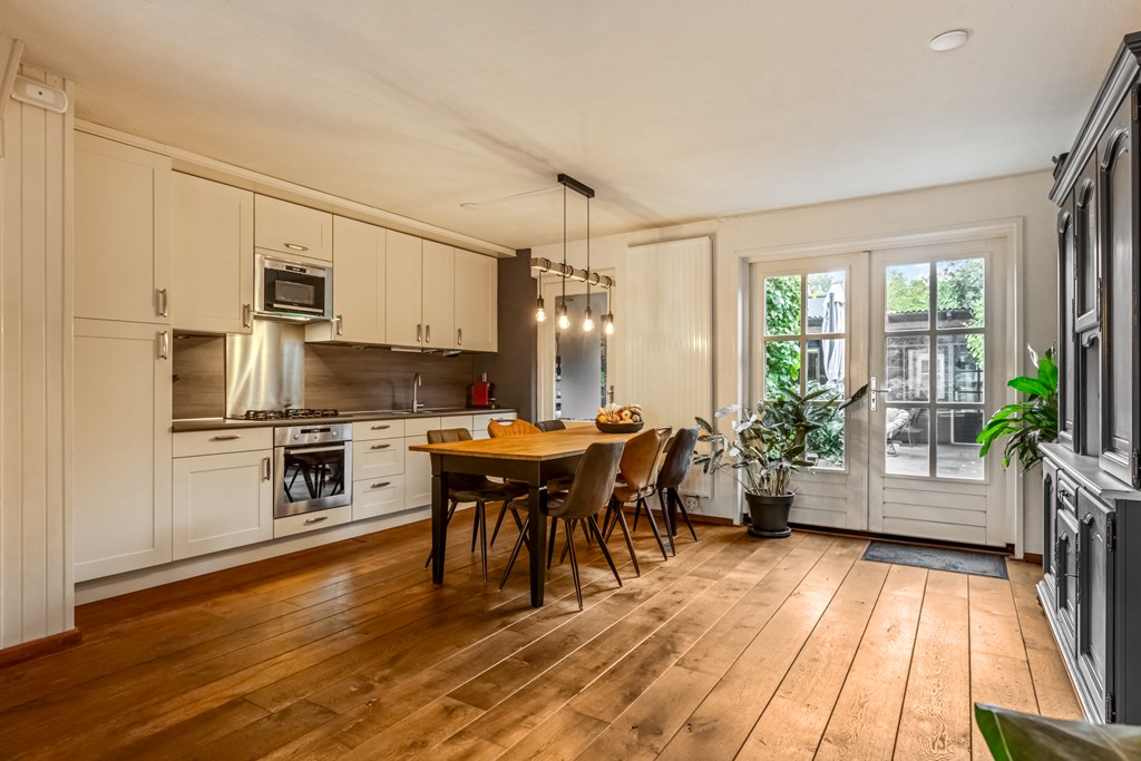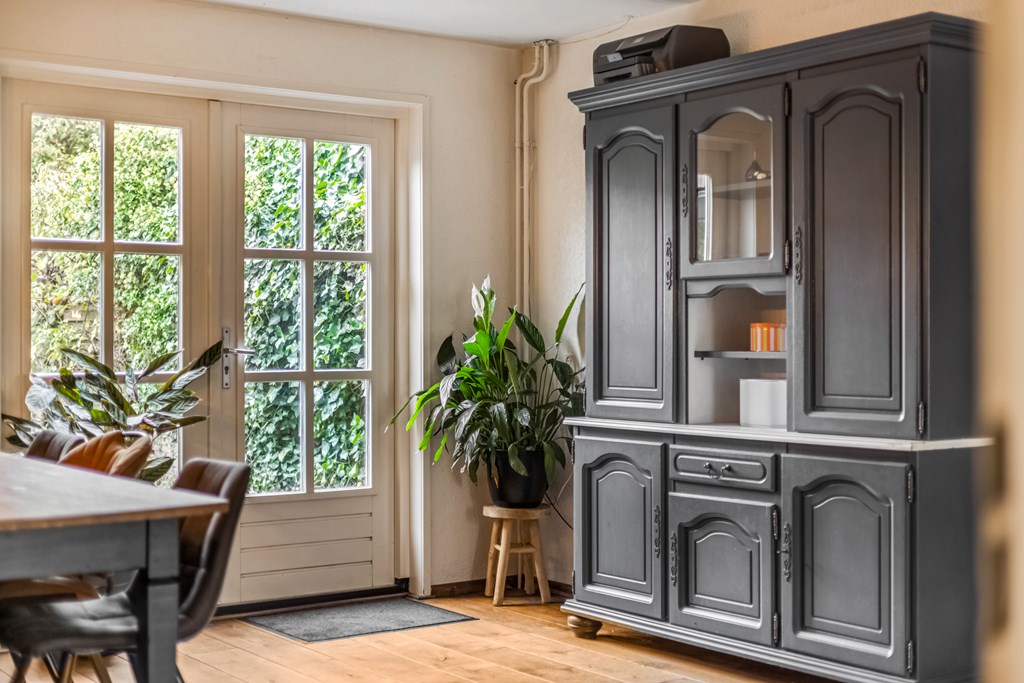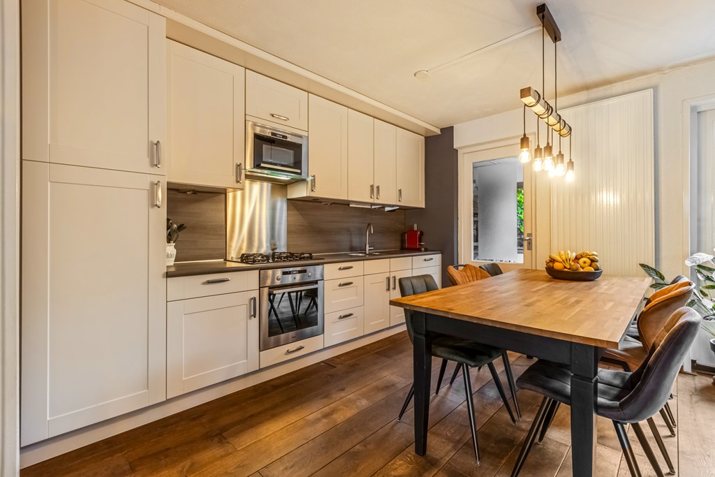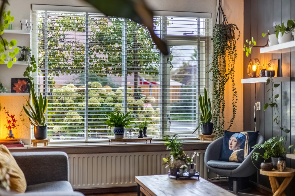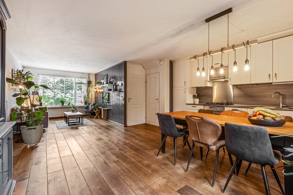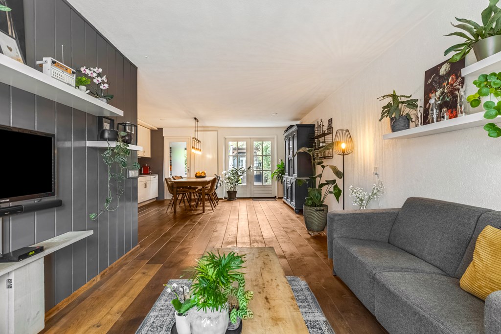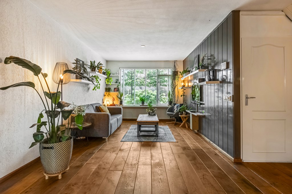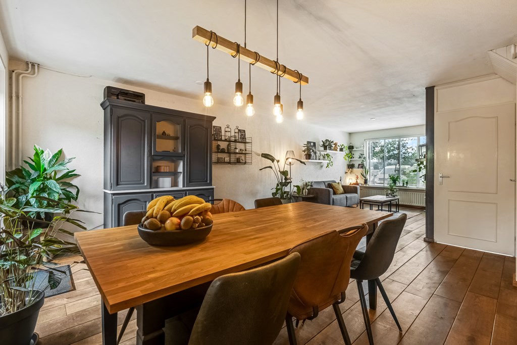 Bij aankomst valt direct de verzorgde voortuin met leibomen en hortensia’s op. Via de hal stap je binnen in de sfeervolle woonkamer, gelegen aan de voorzijde van de woning. De ruimte voelt direct warm en huiselijk aan, met voldoende plek voor een royale zithoek. De open keuken bevindt zich aan de achterzijde van de woning en biedt voldoende ruimte voor een riante eettafel. Tevens is de achterzijde van de woning voorzien van openslaande deuren richting de tuin, waardoor binnen en buiten met elkaar verbonden zijn.