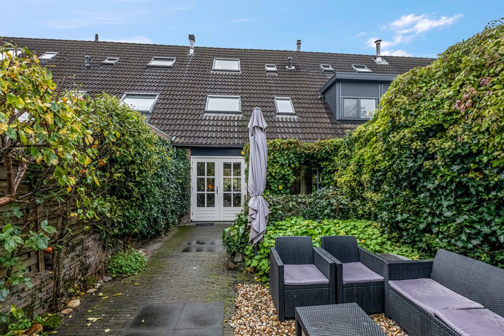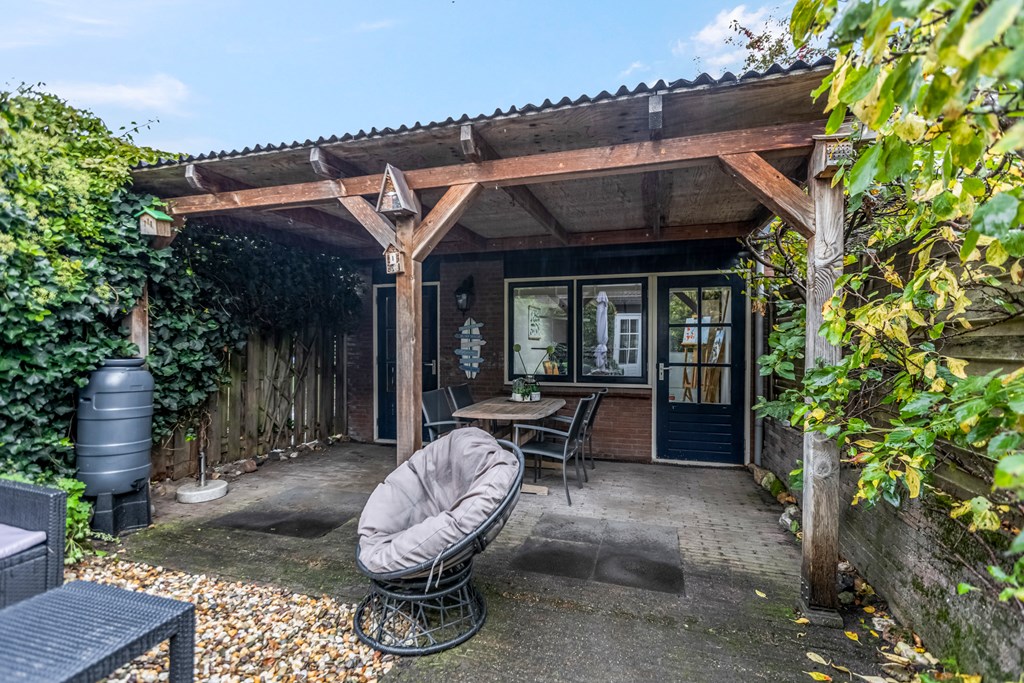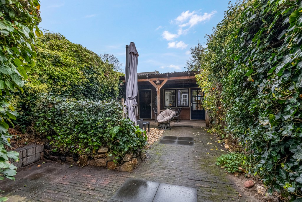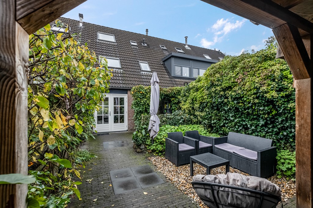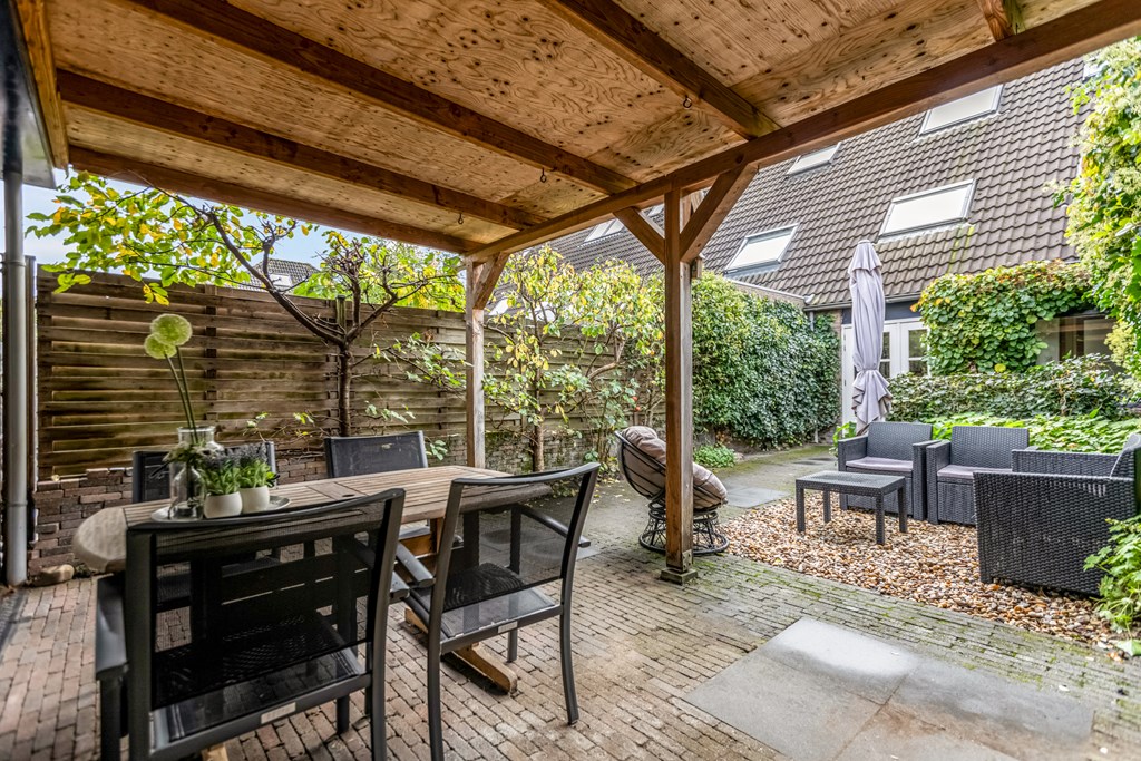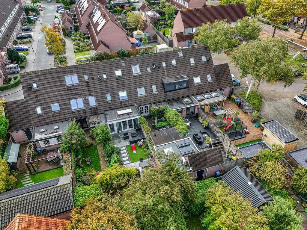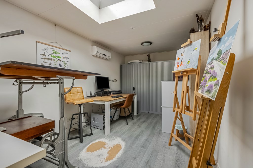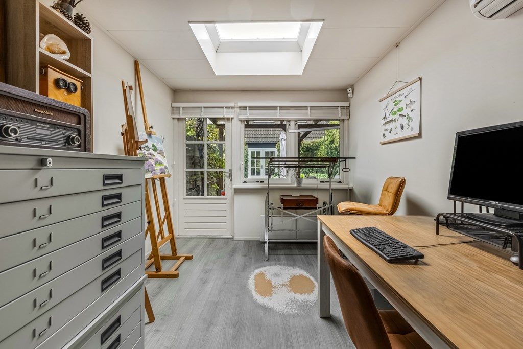 De achtertuin is smaakvol aangelegd en biedt volop privacy. Achterin de tuin staat een praktische en goed geïsoleerde werkruimte van circa 14 m², voorzien van airconditioning, vloerverwarming en een laminaatvloer. Ideaal voor een kantoor, atelier of salon aan huis. Aangrenzend is er een heerlijke veranda, waar je het hele jaar door beschut kunt genieten van het buitenleven.