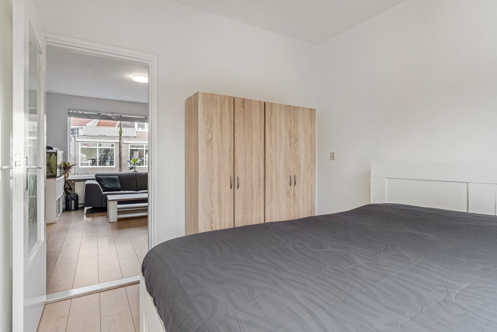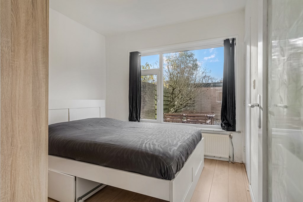 De slaapkamer bevindt zich aan de achterzijde van de woning en ligt daarmee heerlijk rustig. De kamer biedt genoeg ruimte voor een groot tweepersoonsbed en een kledingkast. Vanuit jouw slaapkamer kijk je zo in jouw tuin. Dat is lekker wakker worden!
